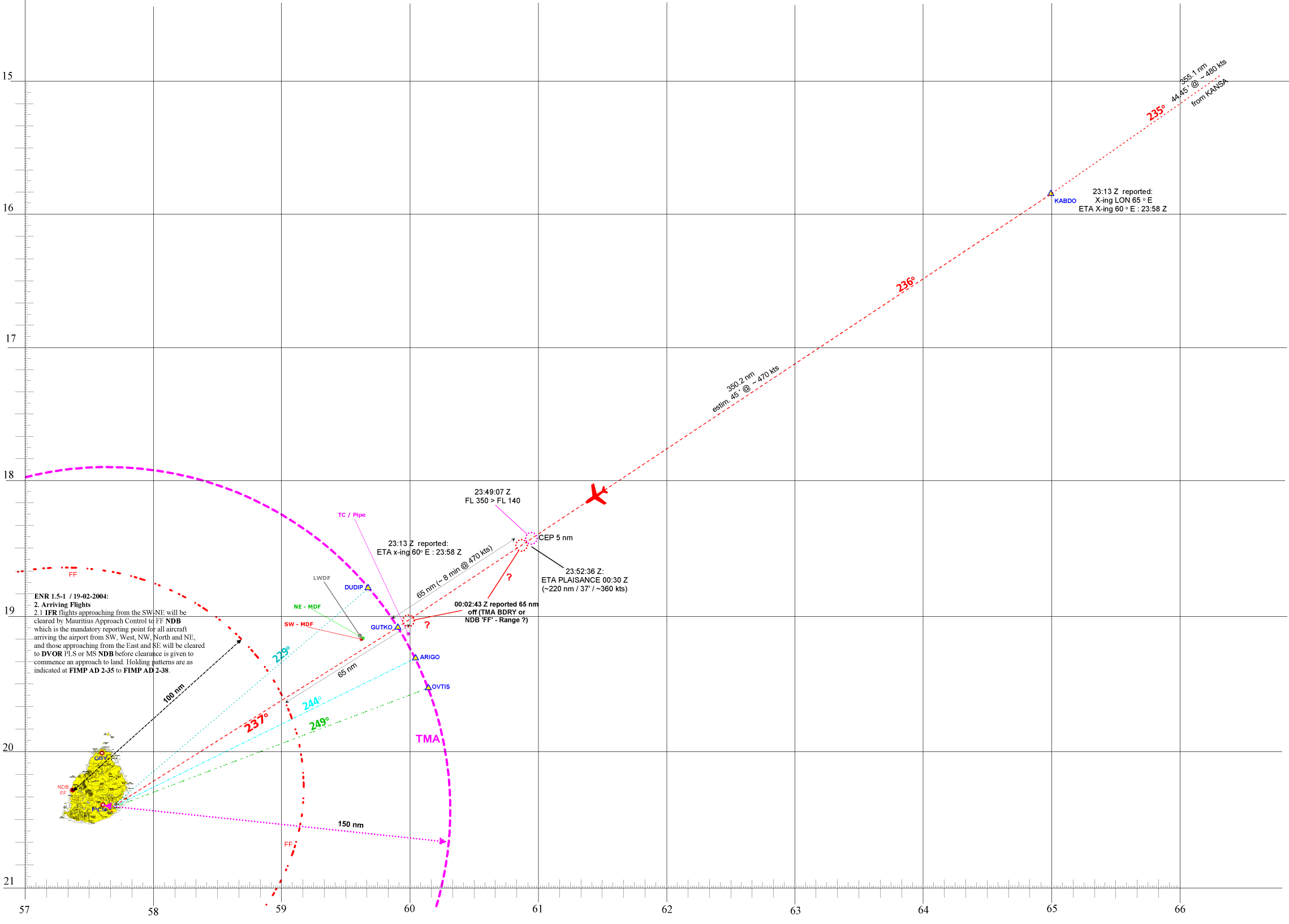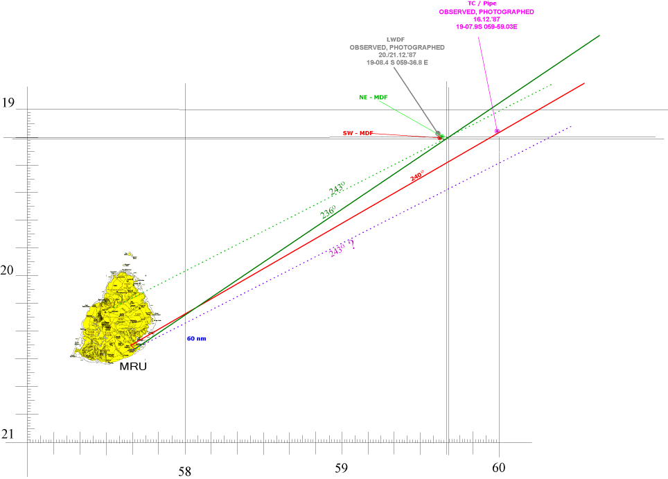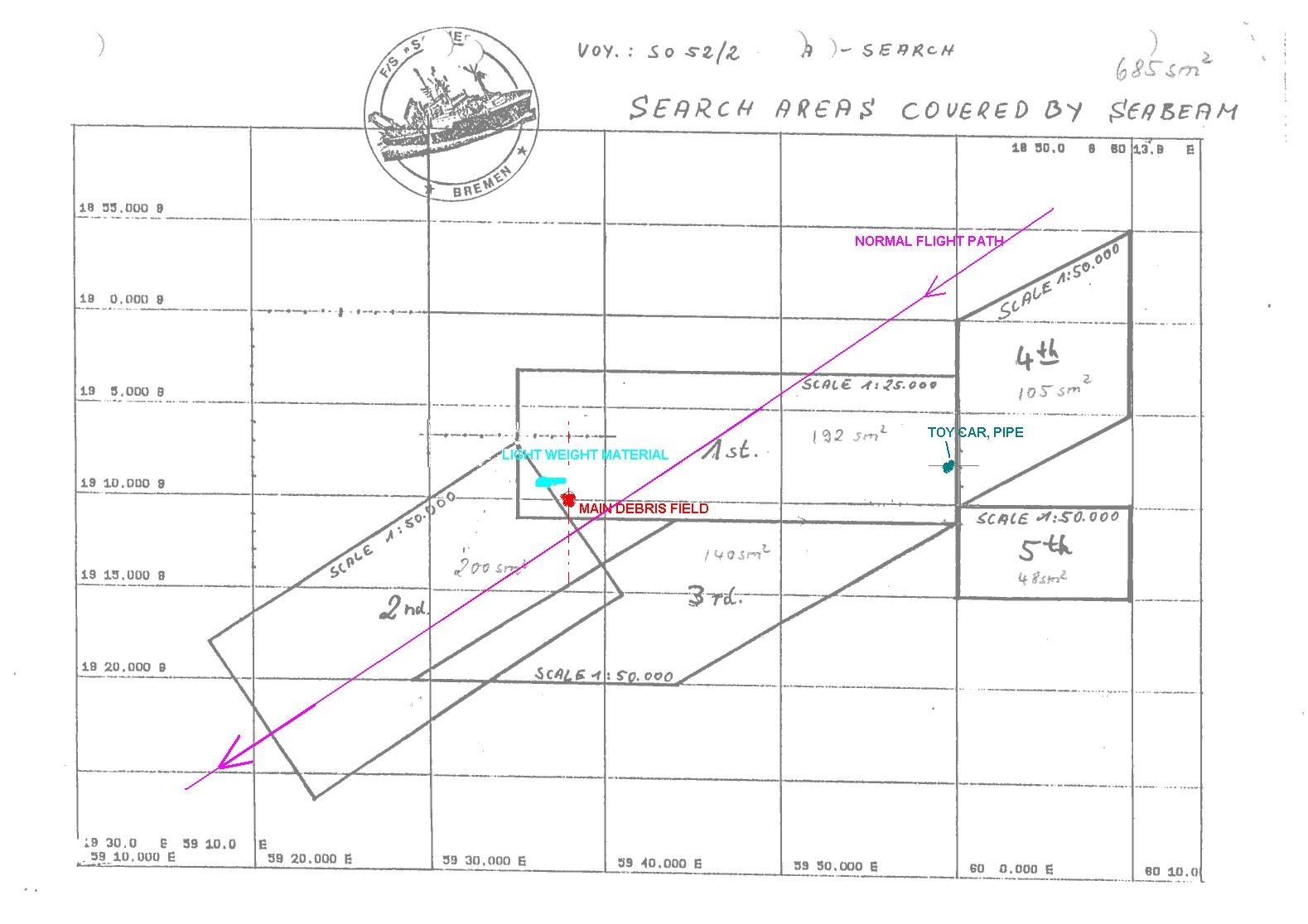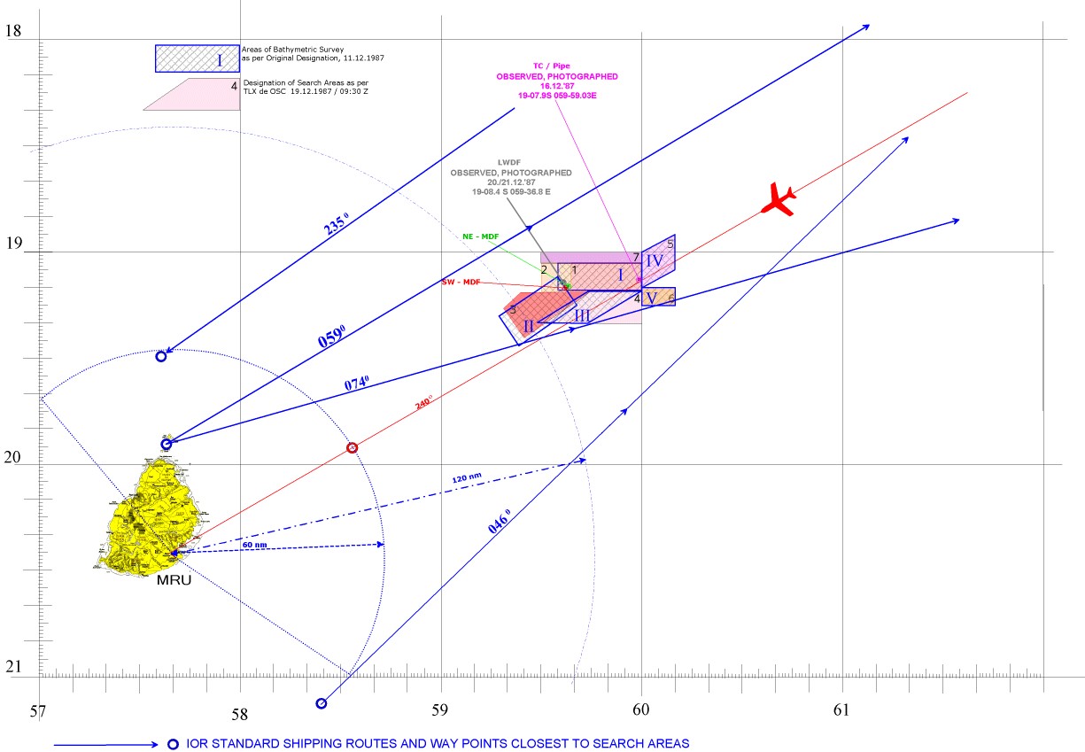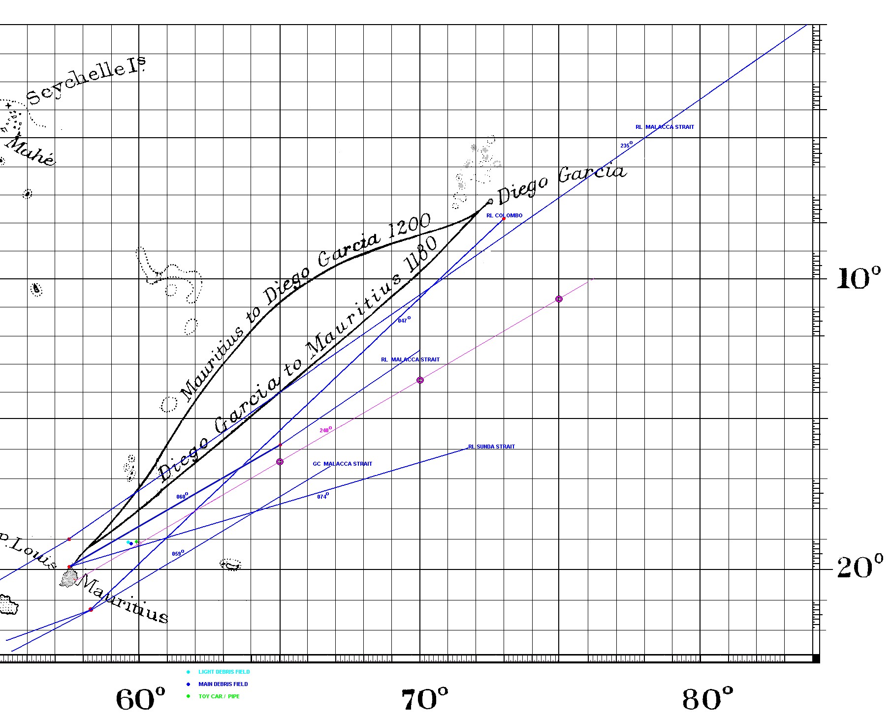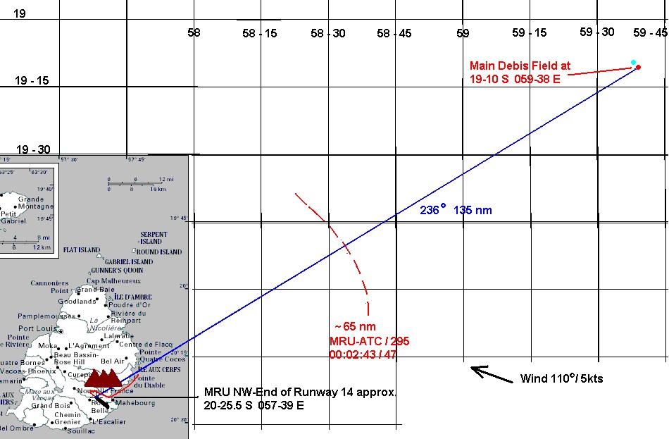 It has also been reported on other sites that SAAF planes were in the air at the time, it has been posed that there is a possibility of a ‘false beacon’ as was also suggested in another Cecil Margo case, the Samora Machel plane crash of 1986. If the trick worked once, I’d guess they might keep using it. I’ve been told that since the operation of the 747 is literally pushbutton once in the air and a beacon can be carried on a plane, in a small boat, etc. the possibility of a false beacon is good because there was no logical reason for the plane to turn north away from Mauritius, unless the change in direction was caused by starboard drag which is examined later.