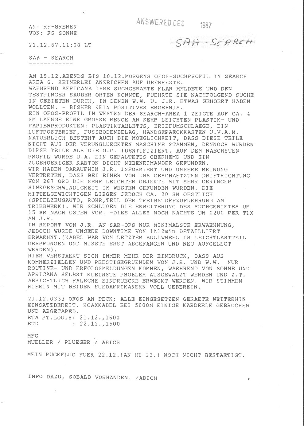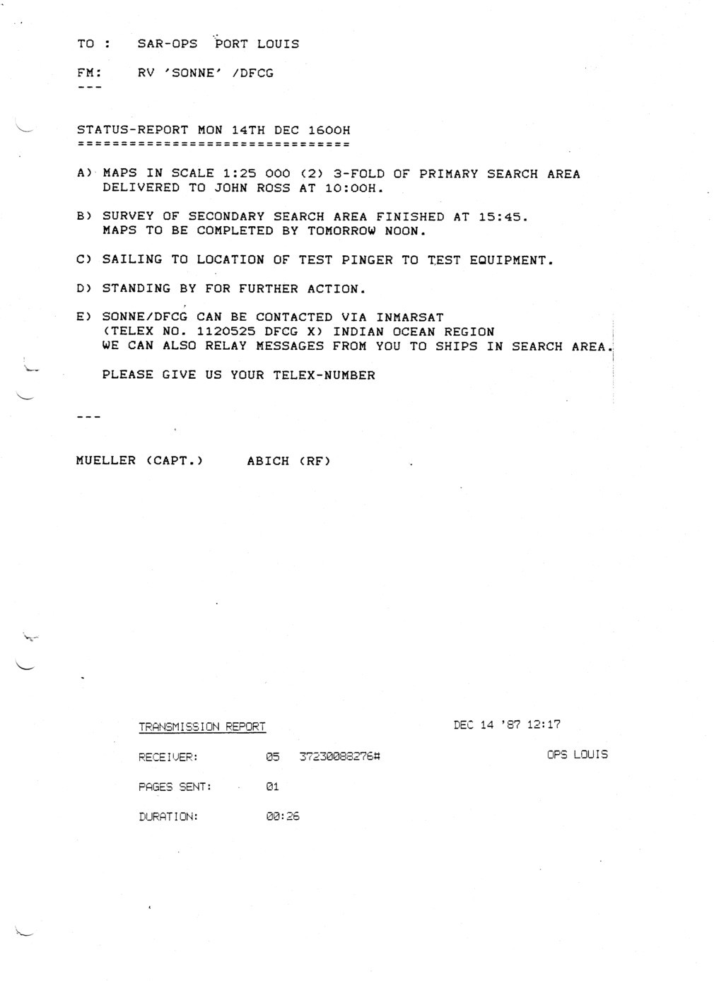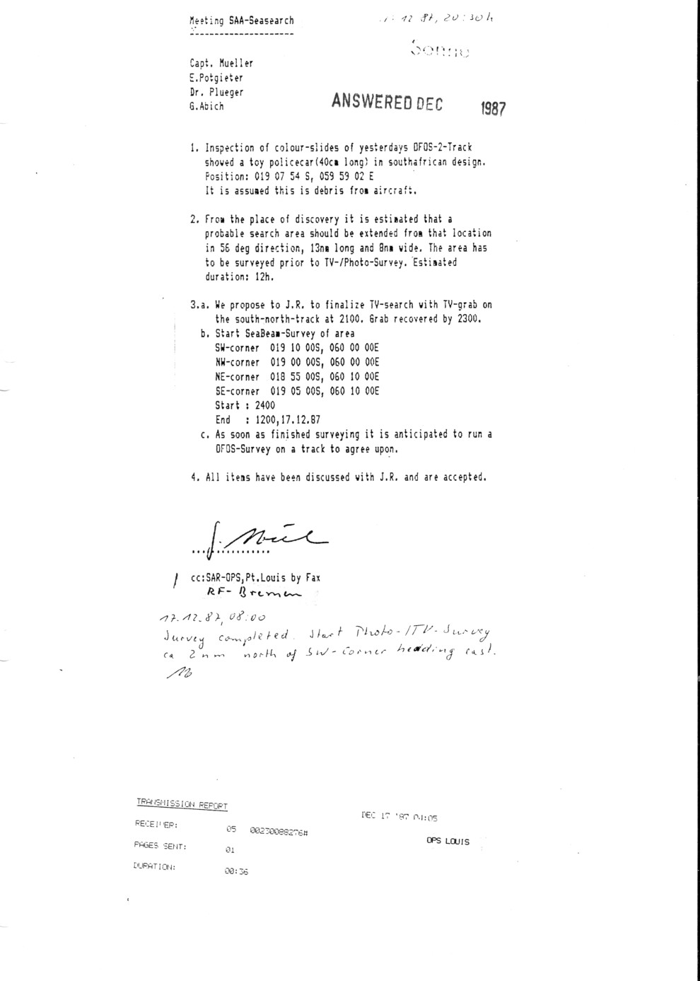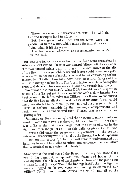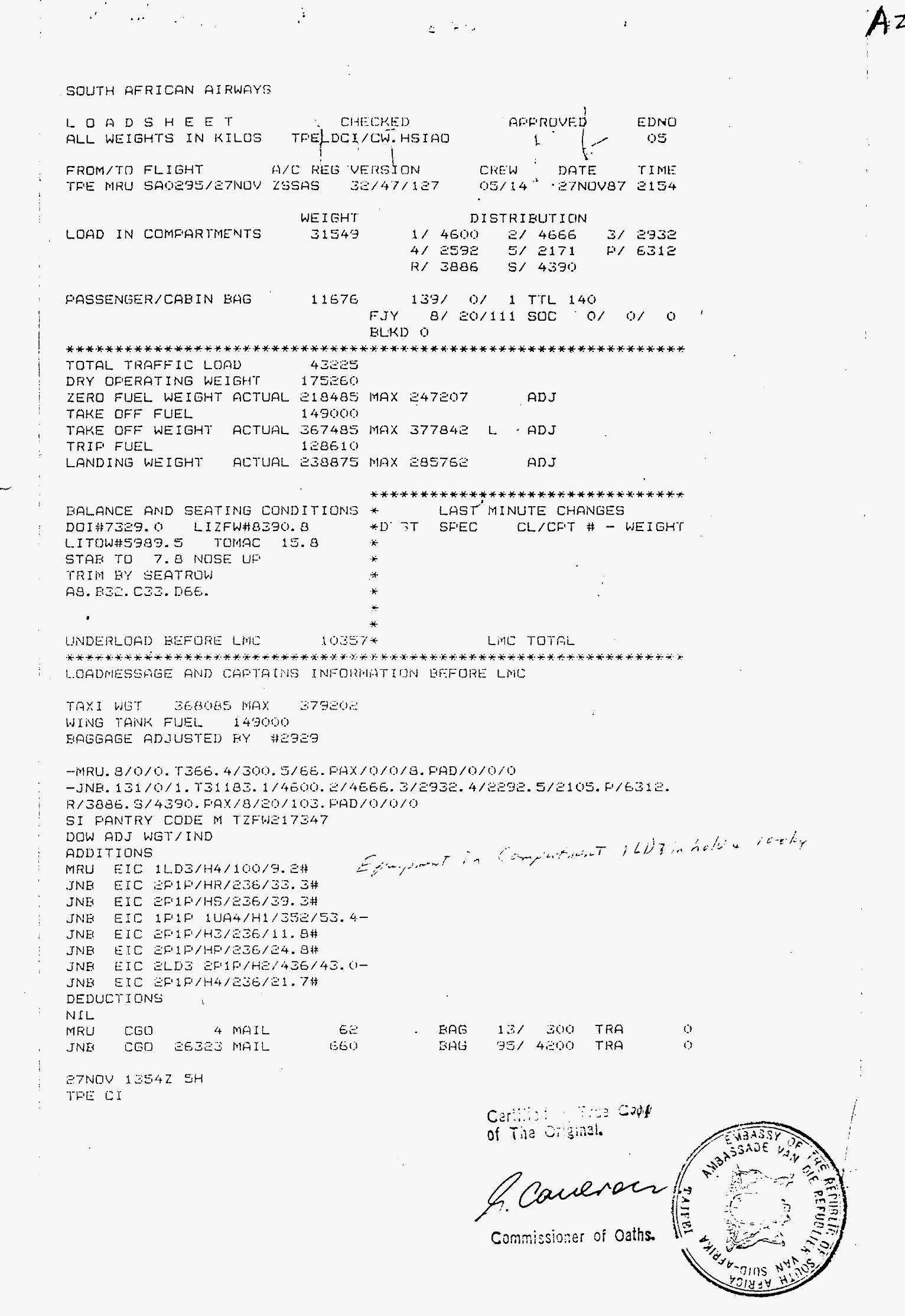 It has also been reported on other sites that SAAF planes were in the air at the time, it has been posed that there is a possibility of a ‘false beacon’ as was also suggested in another Cecil Margo case, the Samora Machel plane crash of 1986. If the trick worked once, I’d guess they might keep using it. I’ve been told that since the operation of the 747 is literally pushbutton once in the air and a beacon can be carried on a plane, in a small boat, etc. the possibility of a false beacon is good because there was no logical reason for the plane to turn north away from Mauritius, unless the change in direction was caused by starboard drag which is examined later.