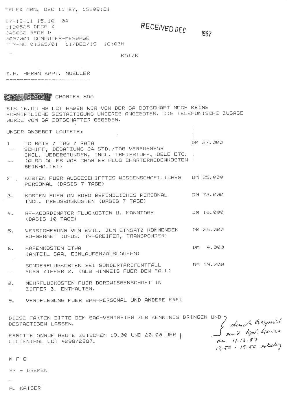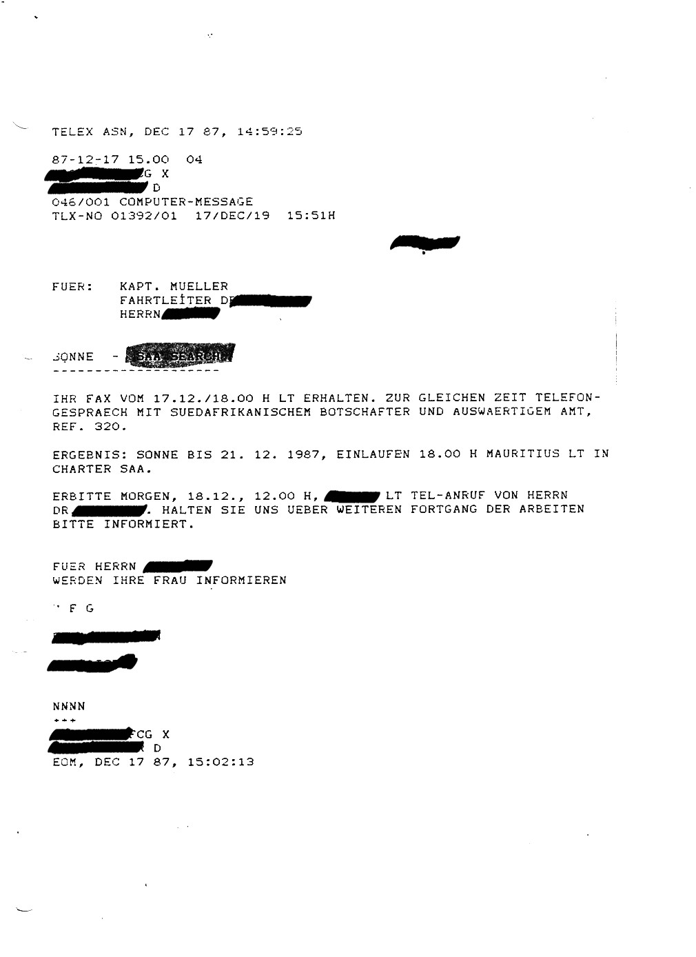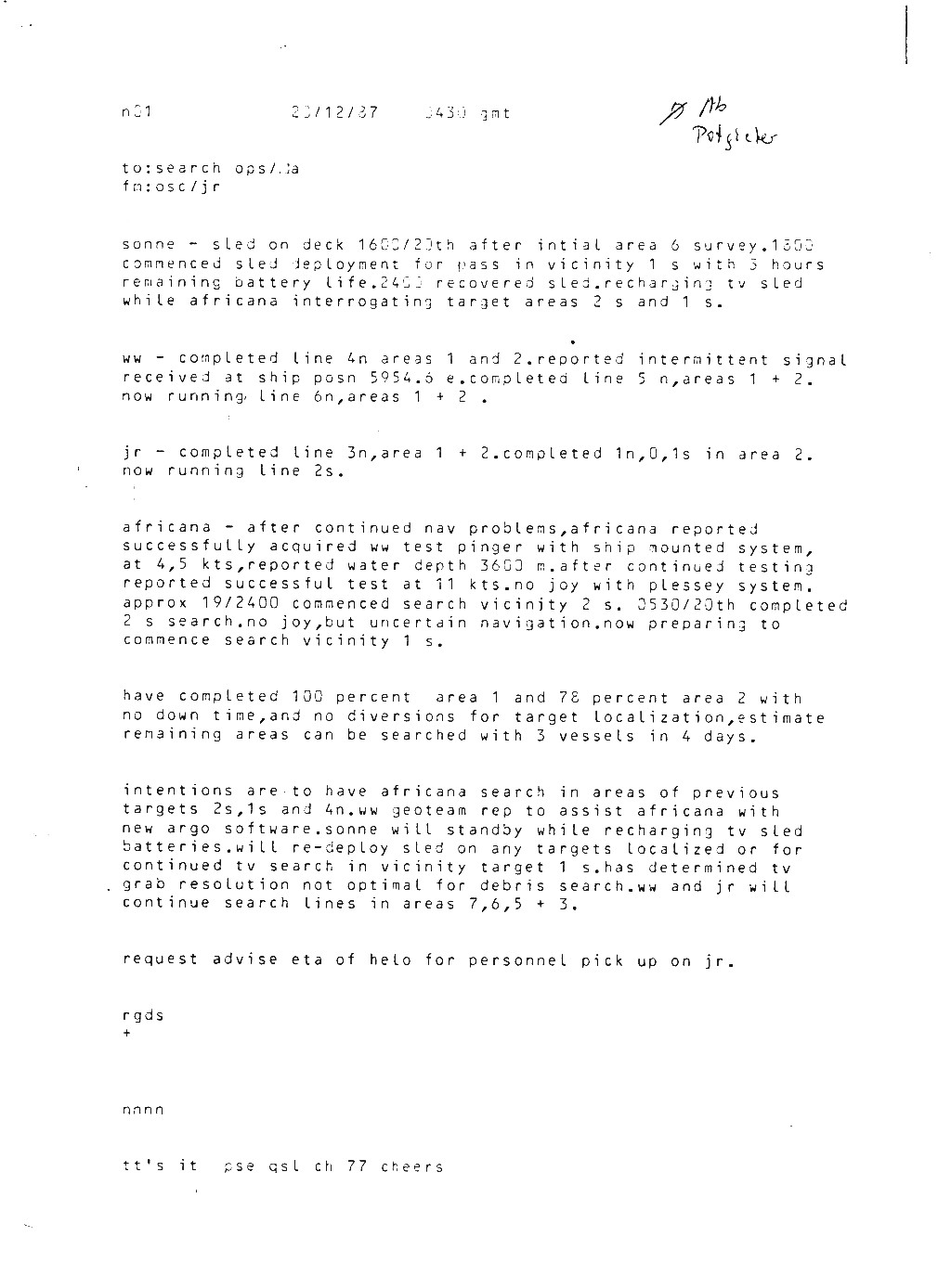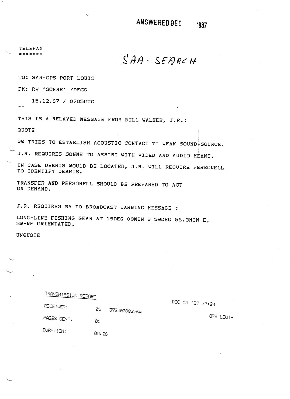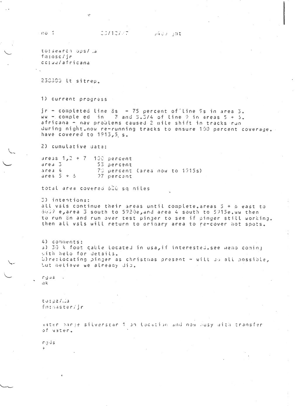 It has also been reported on other sites that SAAF planes were in the air at the time, it has been posed that there is a possibility of a ‘false beacon’ as was also suggested in another Cecil Margo case, the Samora Machel plane crash of 1986. If the trick worked once, I’d guess they might keep using it. I’ve been told that since the operation of the 747 is literally pushbutton once in the air and a beacon can be carried on a plane, in a small boat, etc. the possibility of a false beacon is good because there was no logical reason for the plane to turn north away from Mauritius, unless the change in direction was caused by starboard drag which is examined later.