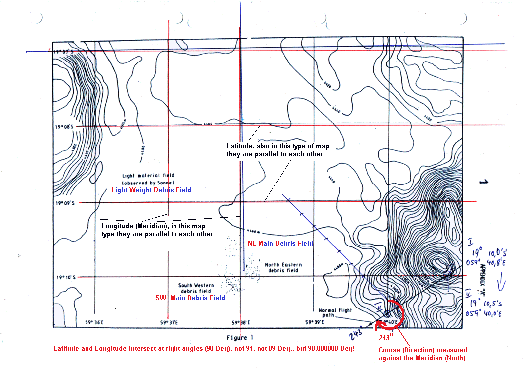 Some notes on the debris field maps (I believe they are real and accurate, since I know the source)